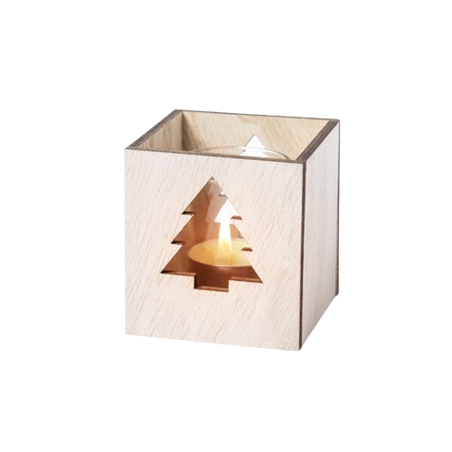 houten theelichthouder. Theelicht en houder inbegrepen.